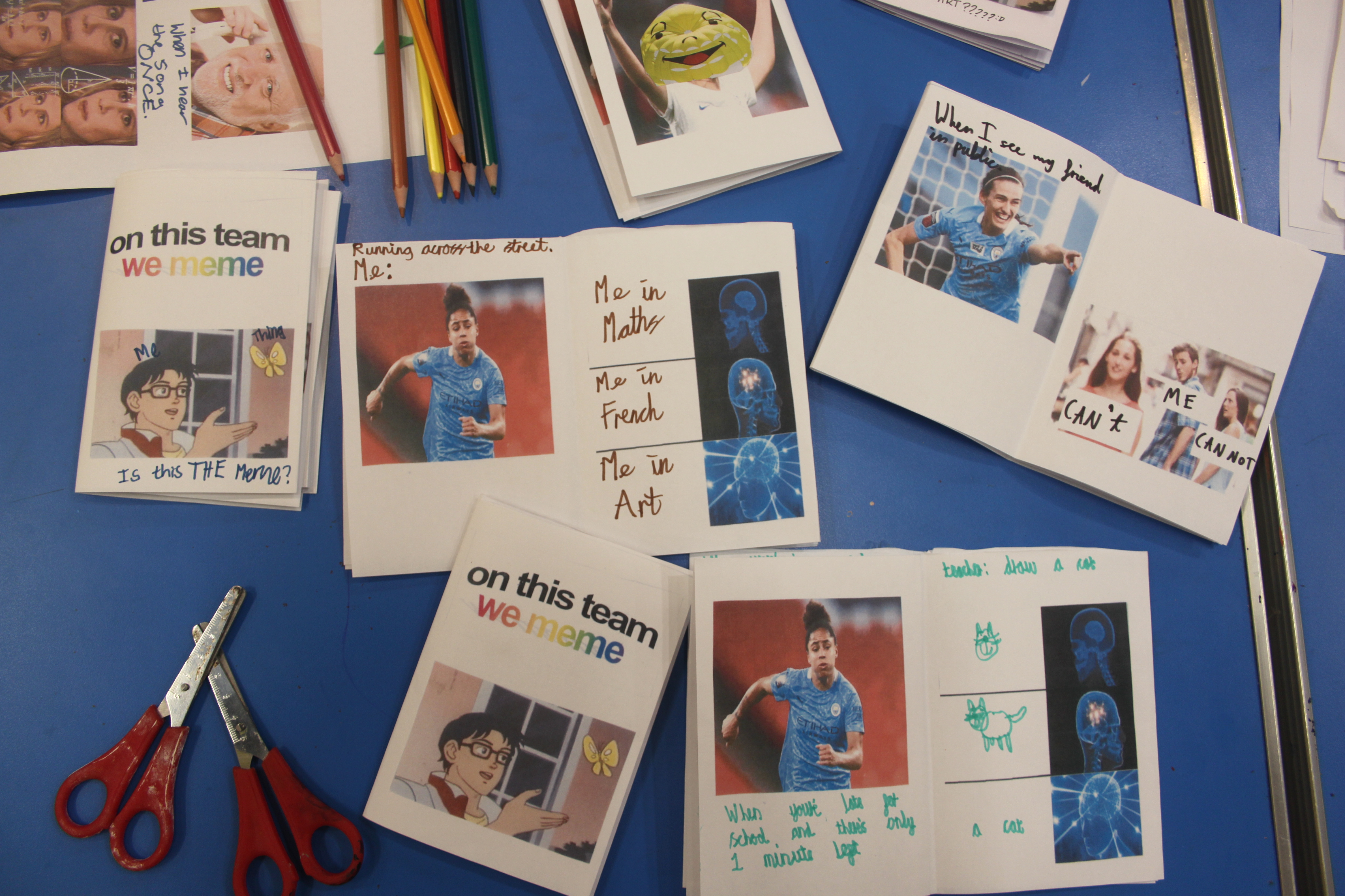 This zine making workshop is popular amongst secondary aged people. We learn how to make zines, then use collage, text, image and humour to create a book of memes. I encourage conversations about the way that we use the internet; online habits, how and who content is created for. In this workshop, humour is used as a way of ‘softening’ other conversations, about politics, culture, identity, mental wellbeing.